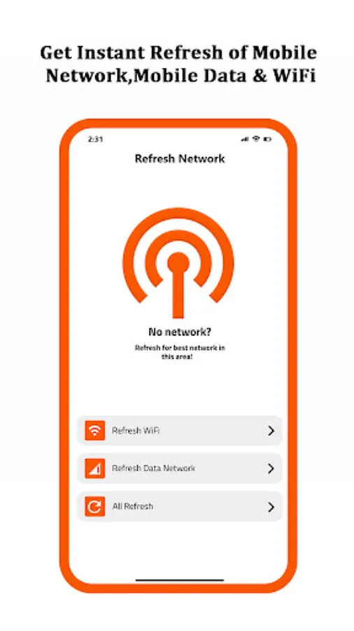 Use this app to optimize your mobile network and internet speed. The app will refresh your signal many times until it finds the best connecting network that will improve your network and internet speed. This way Auto Network Signal Refresher app will help your solve your network connection issue.