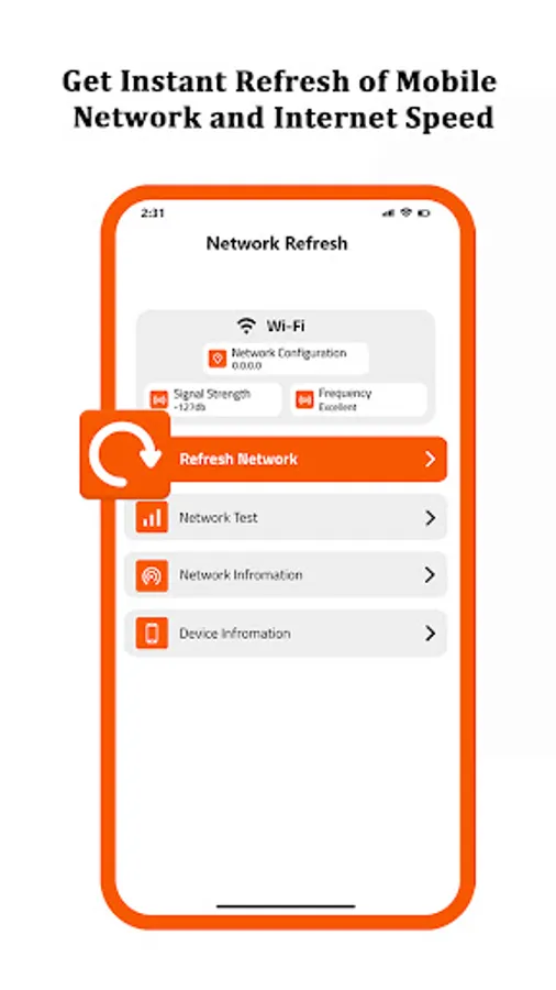 -- A single button to refresh your mobile network, internet speed and WiFi connection..