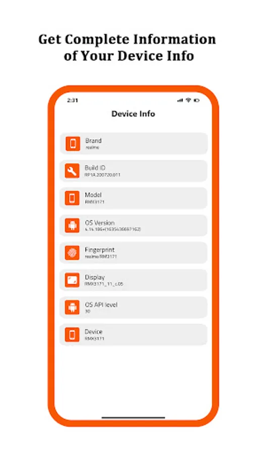 -- Get complete information of Phone Information like: camera details, screen resolution, CPU, etc,