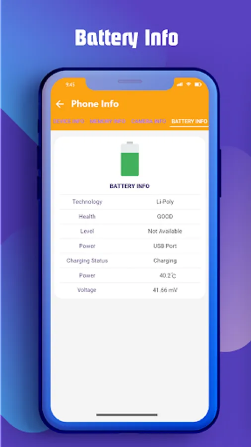 - Technology, Health, Level, Charging Status, Power, Voltage etc.