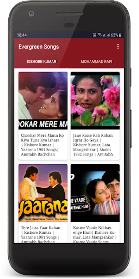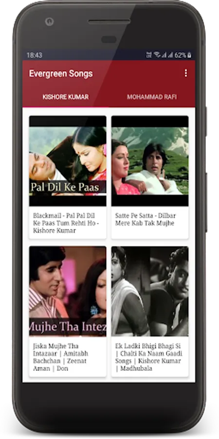 This application is for Mohammed Rafi and Kishore kumar lovers you can watch and listen old songs of Mohammed Rafi & Kishore kumar.