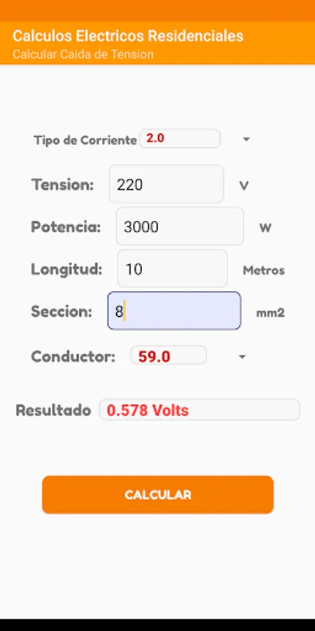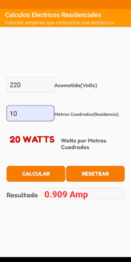 Calculates the amps, resistance, voltage and offers the function of knowing the amps that the residence or dwelling will consume only by placing the square meters of it and the voltage that will reach that residence. This last function lets you know what type and number of driver is the most appropriate to support the consumption of the residence only with two easy and simple steps.