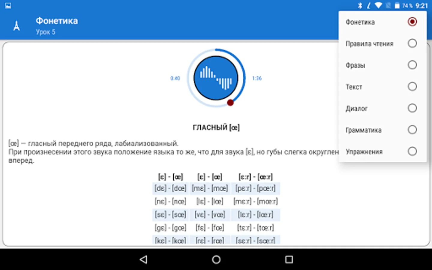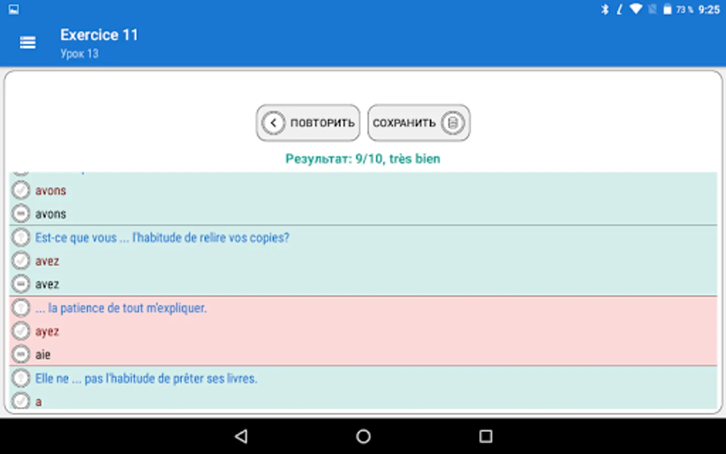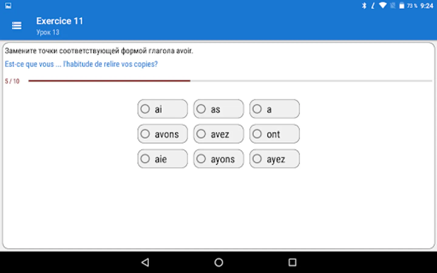 It is recommended to activate the French keyboard for the convenience of typing answers, especially when you need to write special French characters. To enter answers, you can use Google voice input. To do this, in the system settings of your device, you need to add support for French. This will allow not only to enter answers verbally, but also to train in the pronunciation of words and sentences in French. But it is preferable to combine the input of answers on the keyboard and voice for writing and verbal skills.