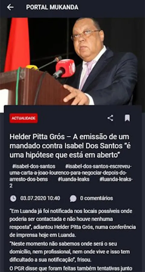 Portal Mukanda is a generalist online news platform, updated at any time on the Internet. Publication without any dependence of a political, ideological and economic nature, is based on its action on the clear distinction between opinion and informative texts.