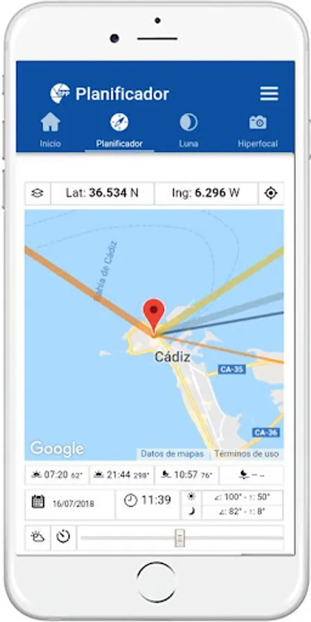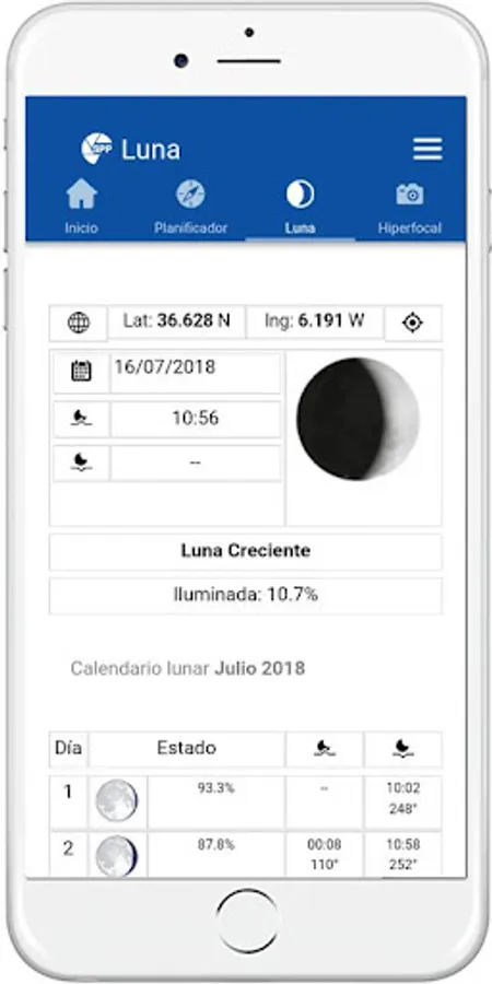 With Simple Photo Planner you can plan your sun and moon photography with your time and angles map, know the state of the moon at all times and also has photographic calculators such as depth of field, hyperfocal, etc.