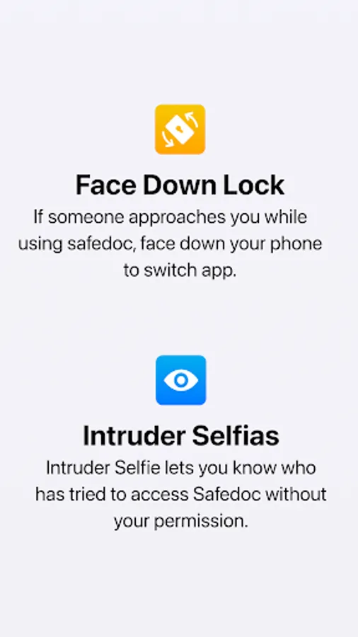 In addition to Passlock, SafeDoc supports Touch ID & FaceLock security.