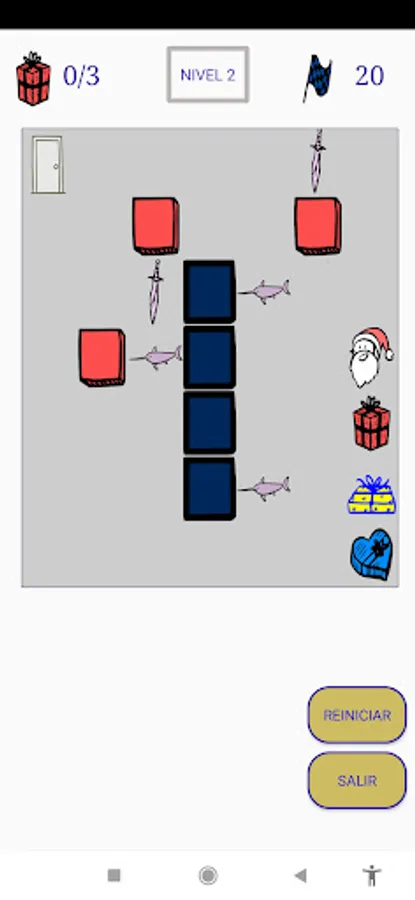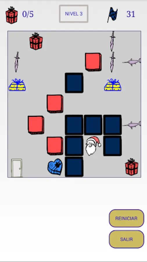 Santa Claus has gifts scattered around his house. Help him collect them and get to the door before he runs out of moves.