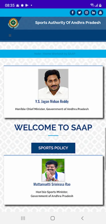 Sports Authority of Andhra Pradesh Directory application has all directory information of AP cabinet ministers, District Officers, MROs, VROs, Coastal Police, Secretaries, Useful web links and SAAP call Helpline features.