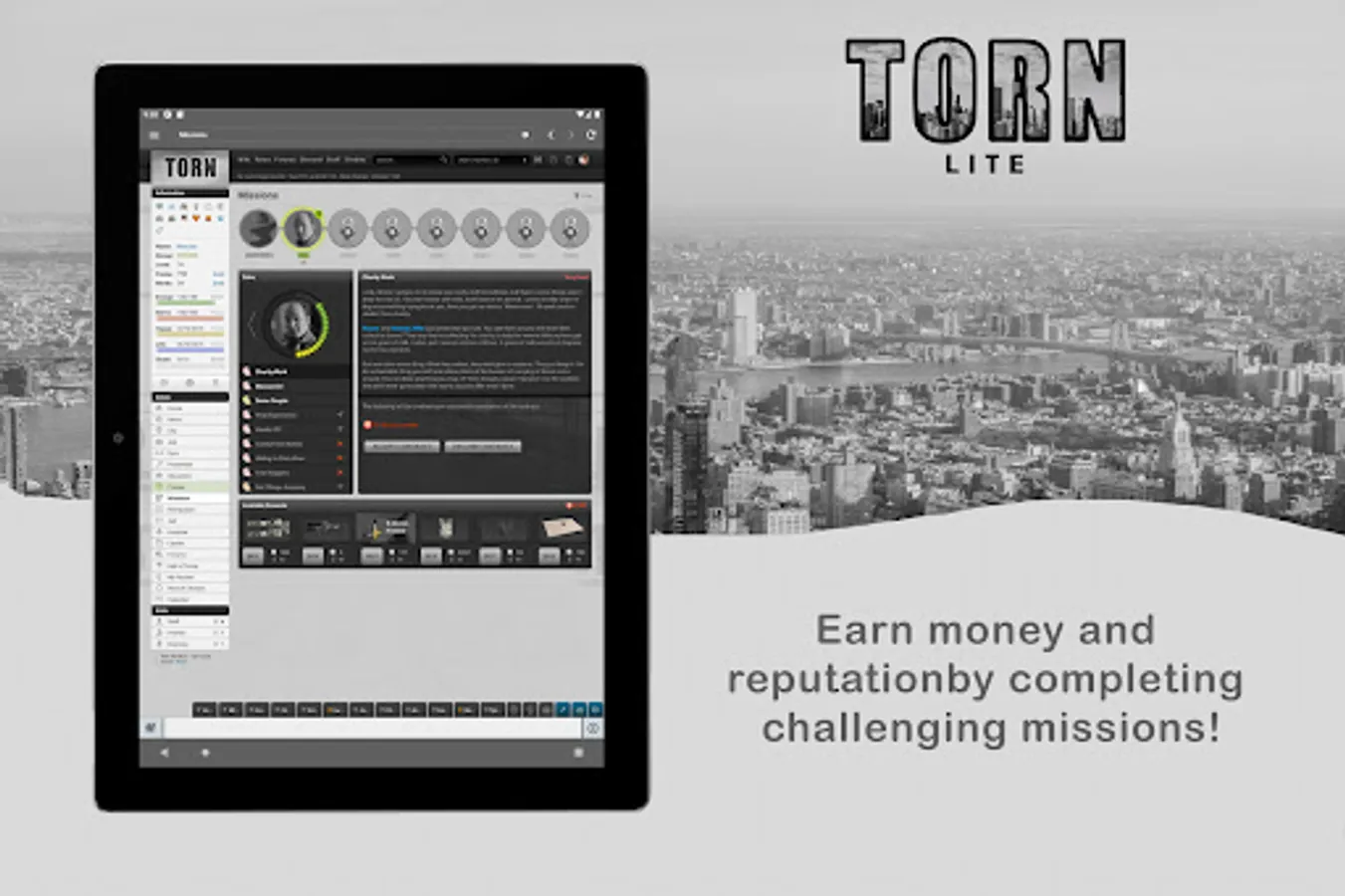 Torn is an exciting, gritty, real-life, text based, massively multiplayer game with thousands of active players around the world. Join them, fight them, befriend them, marry them, gamble against them, trade with them, compete with them, war alongside them. In Torn City you can be anyone and do anything. Build your character to infinite strengths and play it your way.