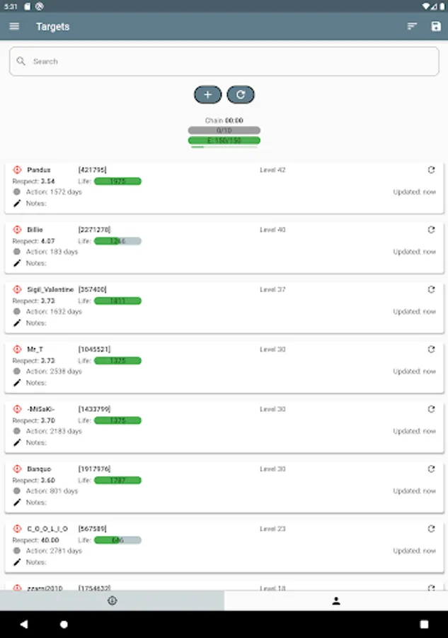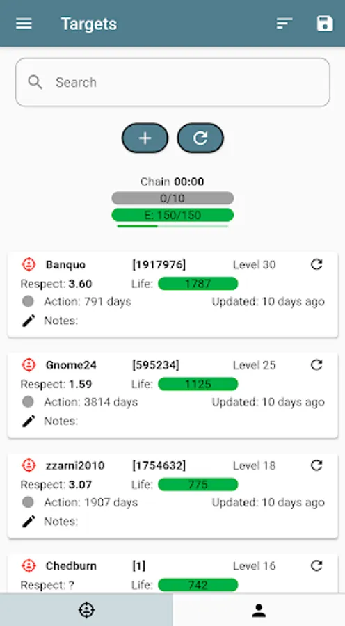 * Create your own target list, adding your own comments and many other details. Import and export your targets to/from YATA. While chaining, automatically skip targets that can't be attacked (hospitalised/jailed or in a different country). Get optimal targets directly from Torn Attack Central, included in the Chaining section. Chaining has never been easier.
