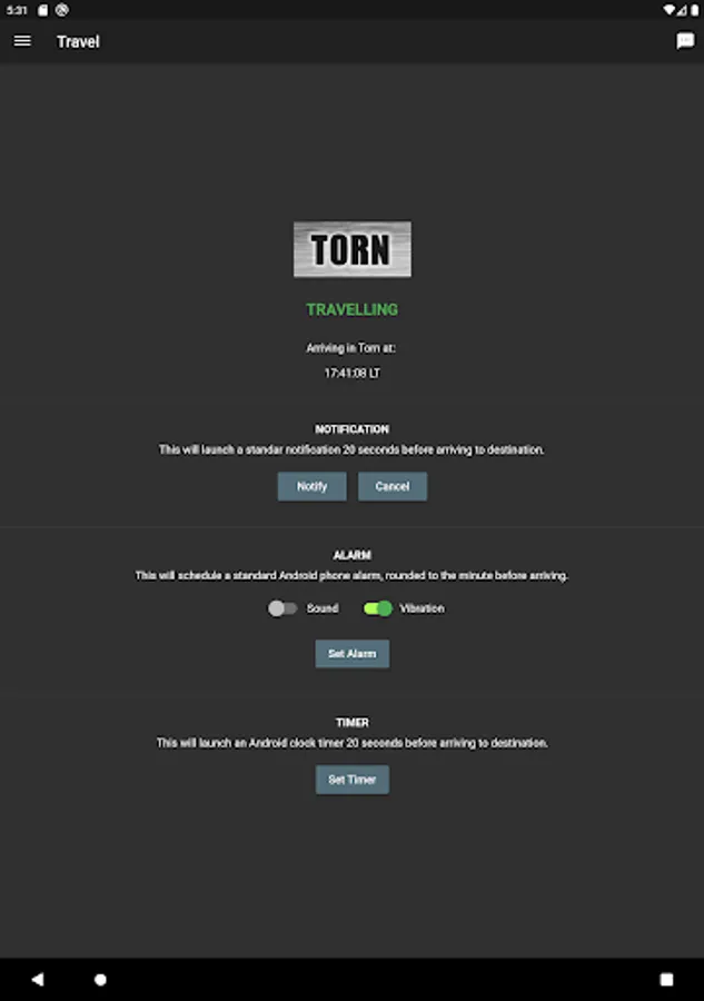 * Check your travel status and configure notifications or alarms just before you arrive. No more forgetting and being mugged abroad. Also, configure the notification shown so that it is safe to use even at work or in other public environments.