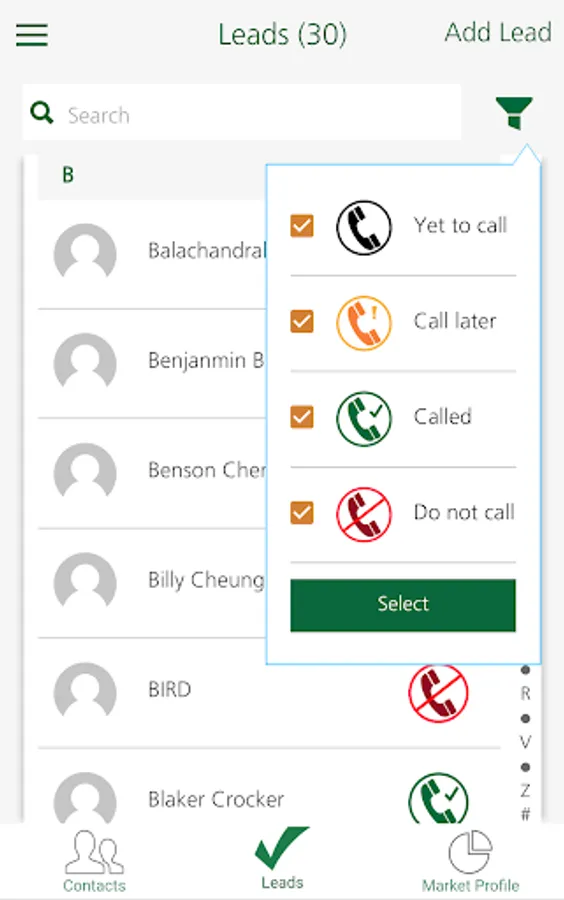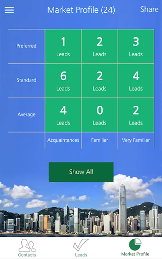 AgentSAM mobile application provides an in-depth Market Profile analysis of leads base on your understanding to each of them. Without any login, you can start identify and manage your sales leads and explore your sales strategy.