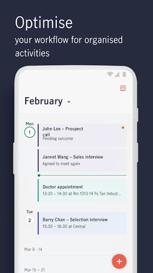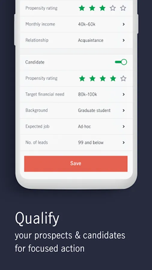 The application intends to support and encourage professional agent management practices, increase agent productivity and improve lead conversion. The activity management module aims to guide agents through advanced qualification, the prioritization of leads and their associated sales/recruitment tasks through to completion.