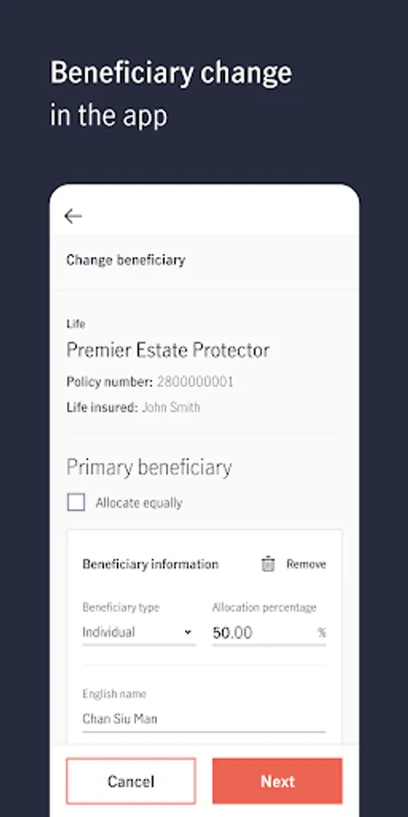 • Review individual insurance policy details and change beneficiary information in a few simple steps
