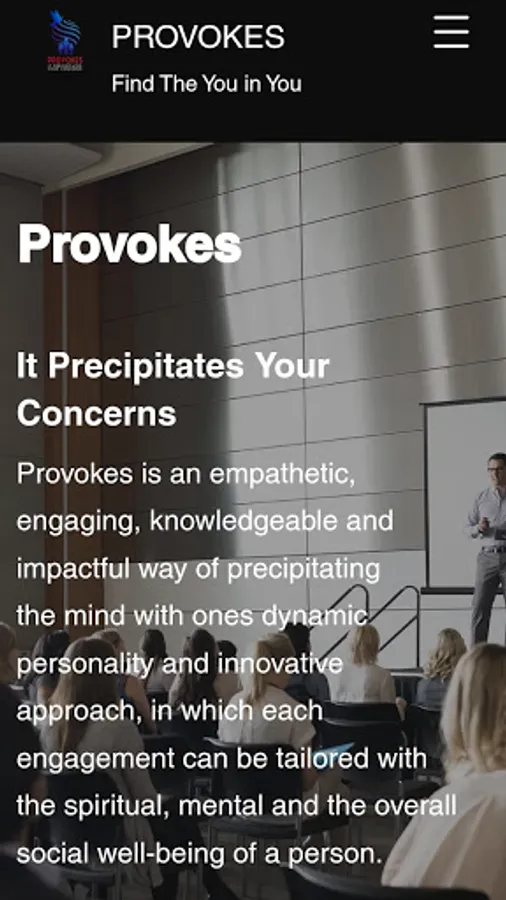 Provokes is an empathetic, engaging, knowledgeable and impactful way of precipitating the mind with ones dynamic personality and innovative approach, in which each engagement can be tailored with the spiritual, mental and the overall social well-being of a person.