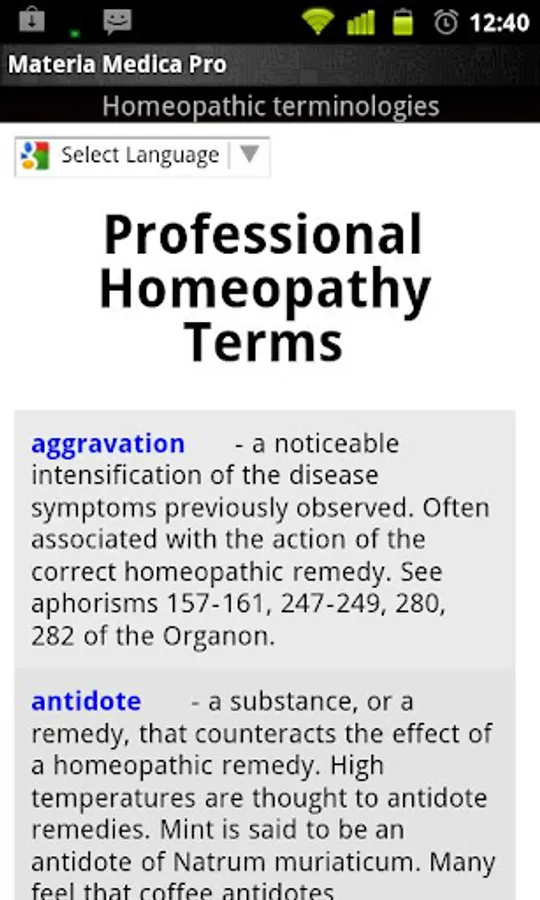 Materia Medica Lite is an adnroid application which enables you to carry "homeopathic materia medica" wherever you go (No need of Internet). This application facilitates the user to browse through the homeopathic remedies in two ways:
