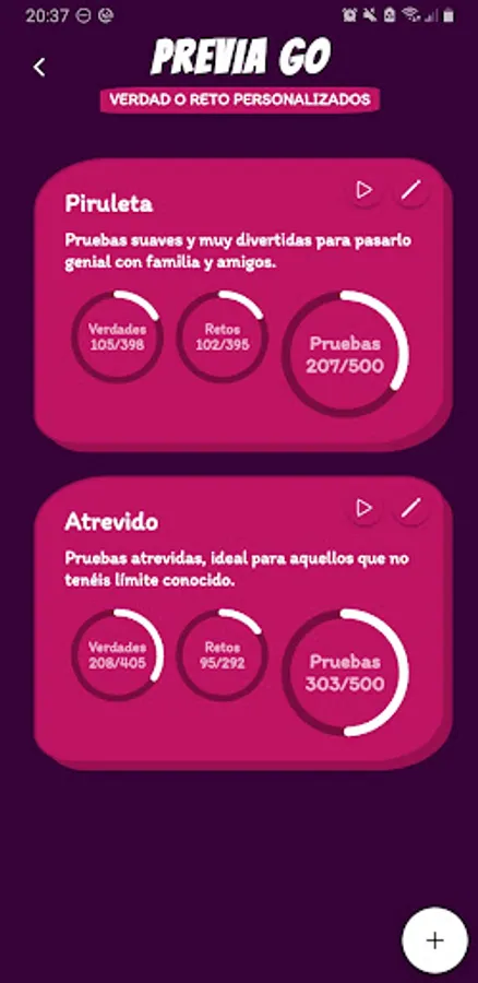 But that is not all. Previa Go offers you a unique opportunity, neither more nor less than the possibility of customizing each of the tests with an advanced editing system. Want to add your own custom tests? No problem! You can create custom games and challenge your friends with your own clever questions and creative challenges. Do not overdo it!