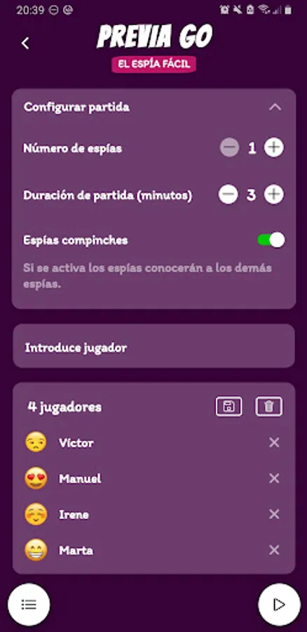 Are you ready to challenge the limits of fun? Previa Go is the game you've been waiting for. Strengthen ties with friends and family through cooperation and sincerity. You will have a great time with our two great games, Truth or Dare and The Spy.