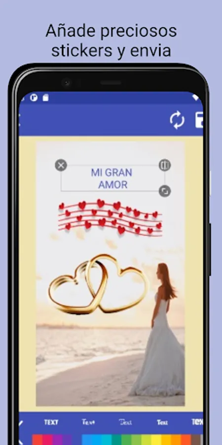 Complete with the best details the memories of your friends' wedding to give it to them, enter a photograph and you can insert text or a wide variety of stickers that will make this beautiful experience more fun.