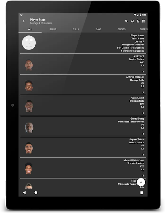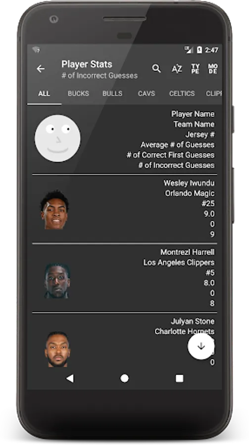 Use Player Stats to find unique statistics for each player, like the average number of guesses it takes you to correctly guess a player's team.