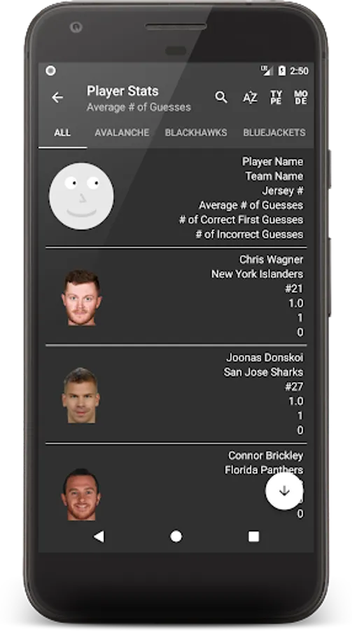 Use Player Stats to find unique statistics for each player, like the average number of guesses it takes you to correctly guess a player's team.