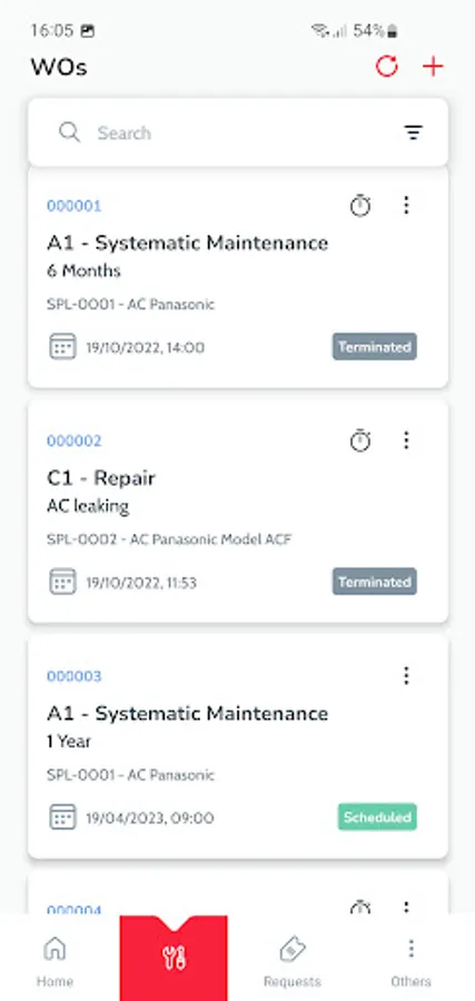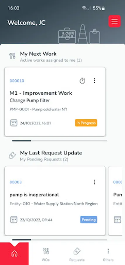 • Main window provides the user's requests and maintenance work, facilitating the day to day of all maintenance operators