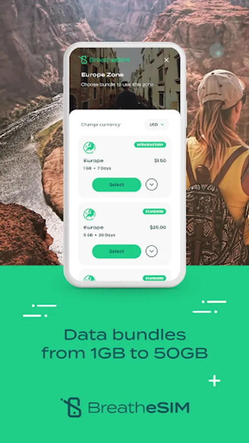 eSIM is a better, more convenient, and more environmentally friendly way for you to connect - no need to buy a SIM at your destination, no more messing around opening the SIM tray, no swapping little pieces of plastic - simply download the BreatheSIM app, sign up, select your destination and bundle, and you're good to go.