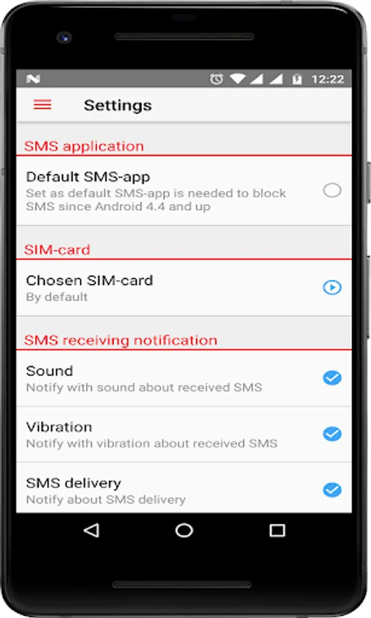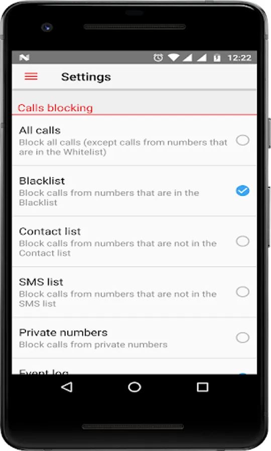 - Mode for blocking calls and/or messages from numbers that are not stored in contacts list,