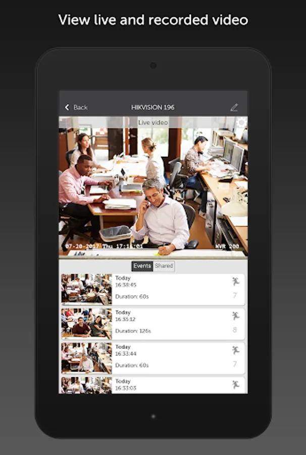 - Watch camera live feeds and recorded video from anywhere