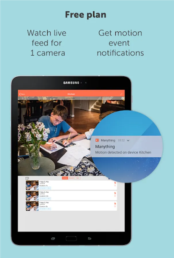 On our free plan you can use 1 spare device as a Manything camera - you can receive motion/sound alerts and watch your camera live stream! Want to upgrade your CCTV system to the cloud or perhaps want to use more than 1 device, watch past video events and save video to the Manything cloud? Upgrade to a monthly subscription plan from just $3.99/month: