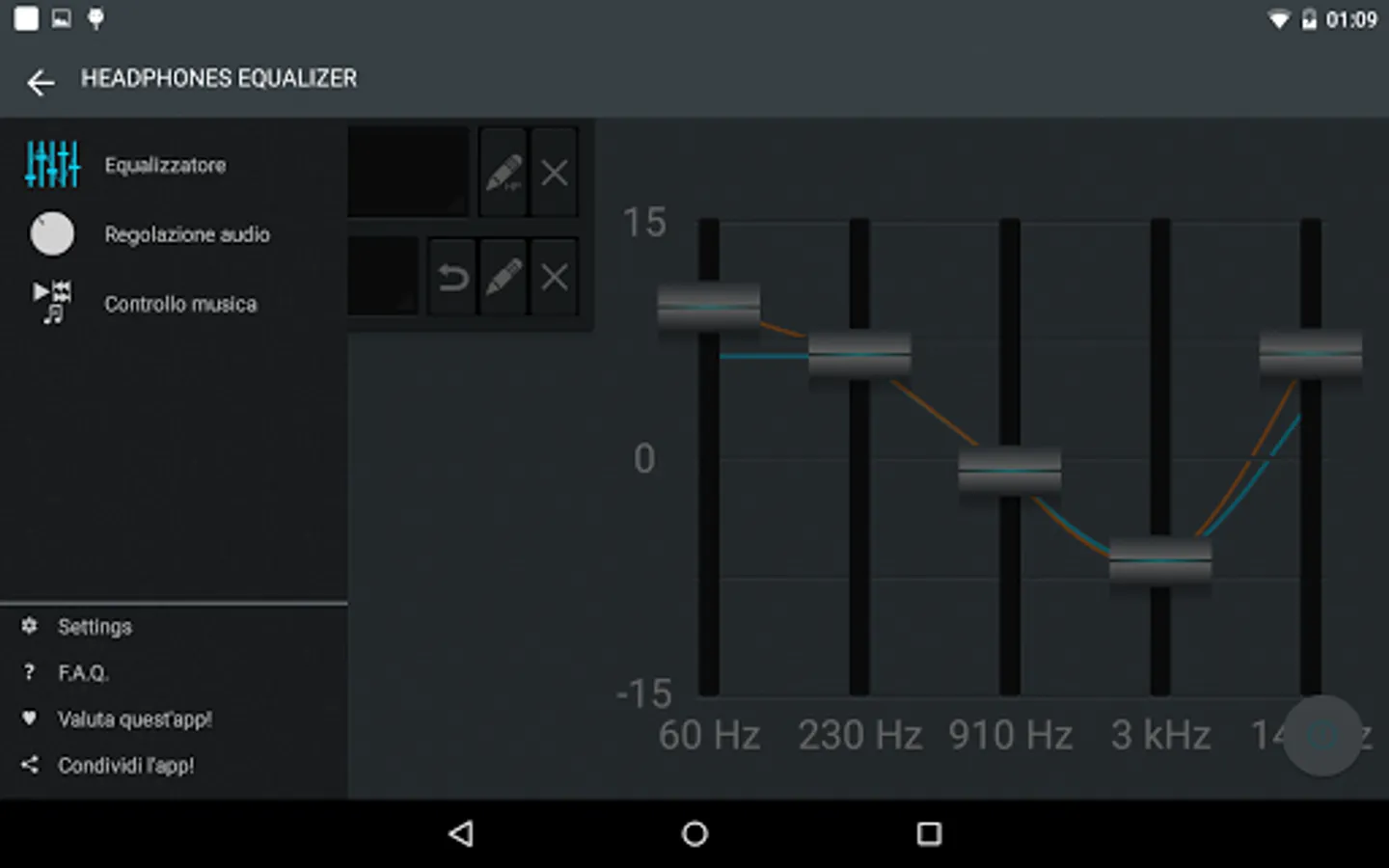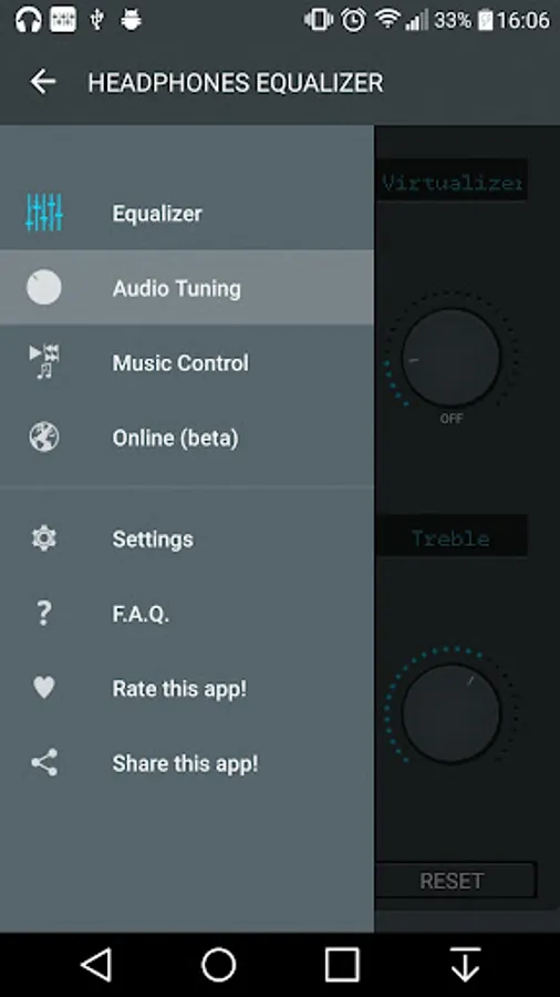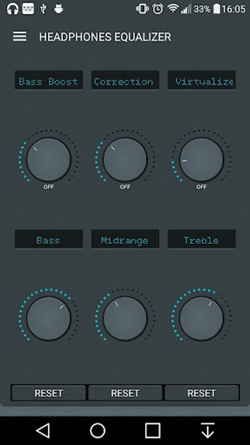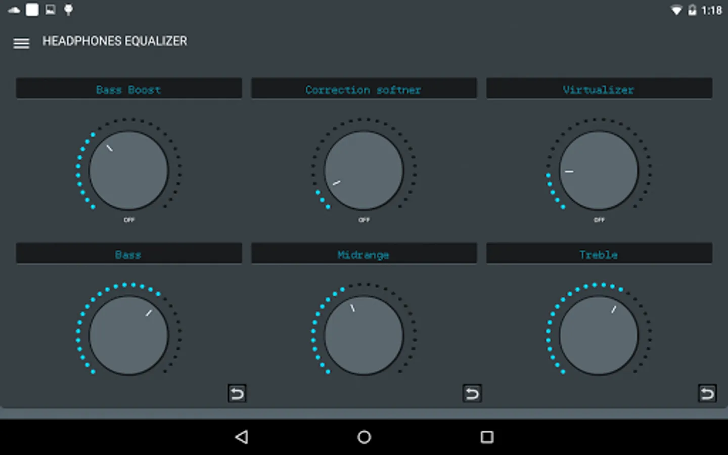 - - Bass boost, Correction attenuation and Virtualizer: use the knobs to achieve the perfect sound for your ears
