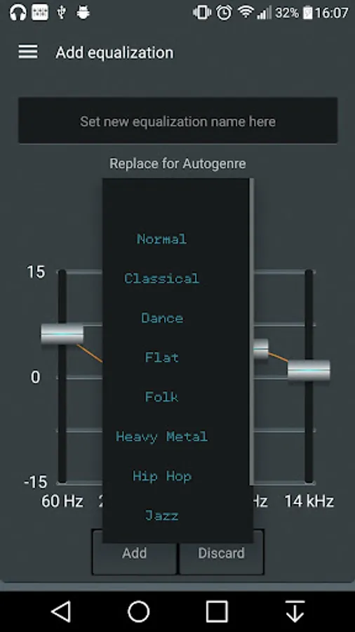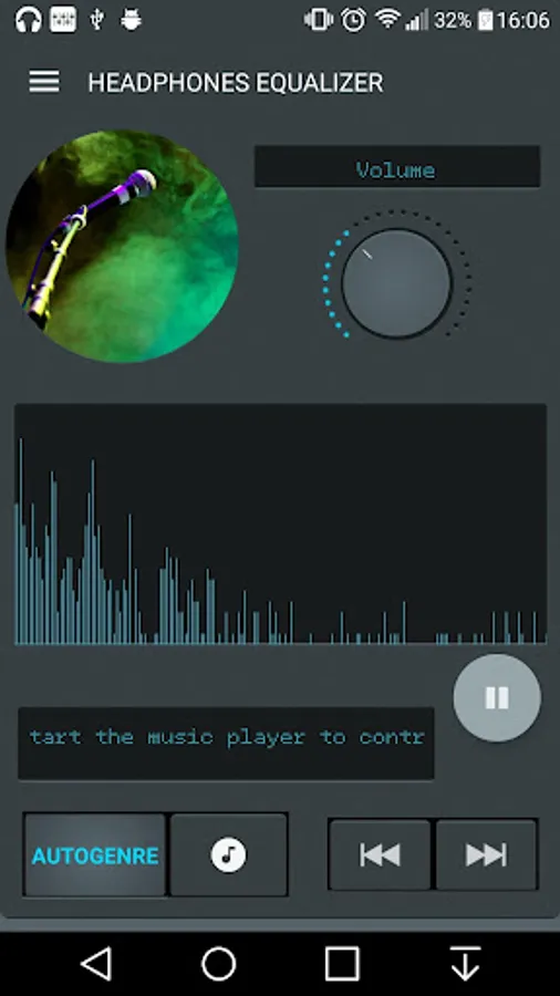 Once you are set, start the equalizer and forget about it by activating the Autogenre function, Headphones Equalizer will try to retrieve the current artist genre.