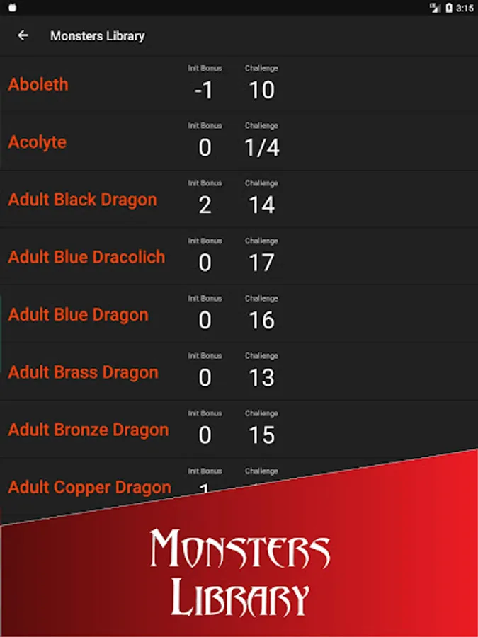 - Simple monster library for D&D 5th Edition quick reference