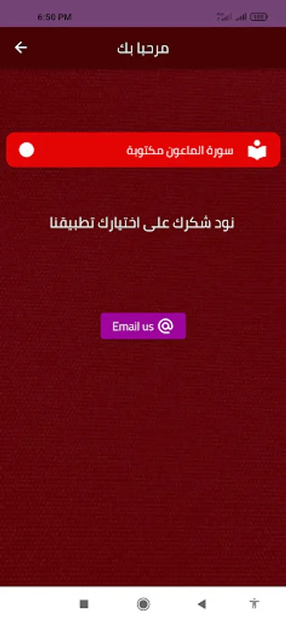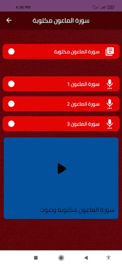 يمكنك التنقل بين أزرار تطبيق سورة الماعون مكتوبة بسهولة