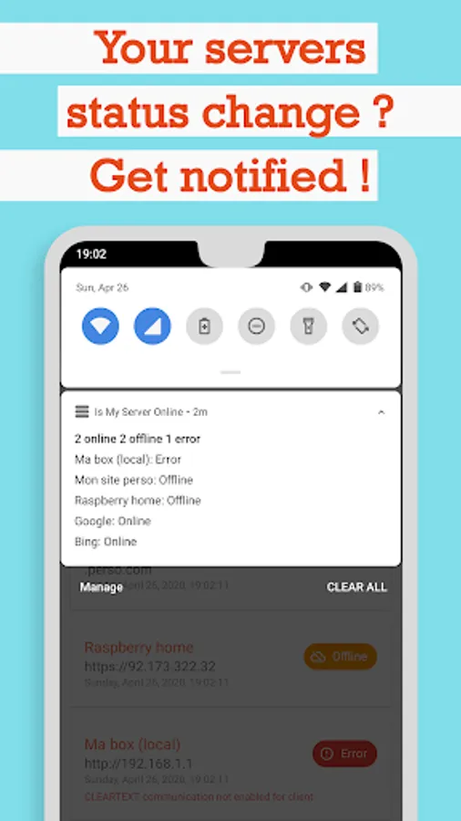 An automatic refresh of your servers status in the background allows you to be notified if a change appears.