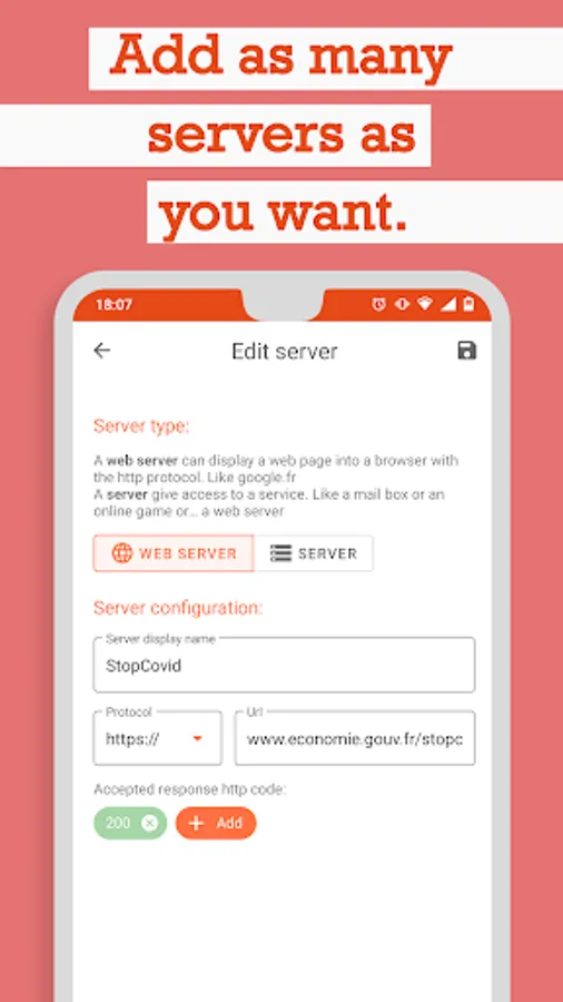 For your website, supports HTTP and HTTPS protocols and allows testing the HTTP return code.