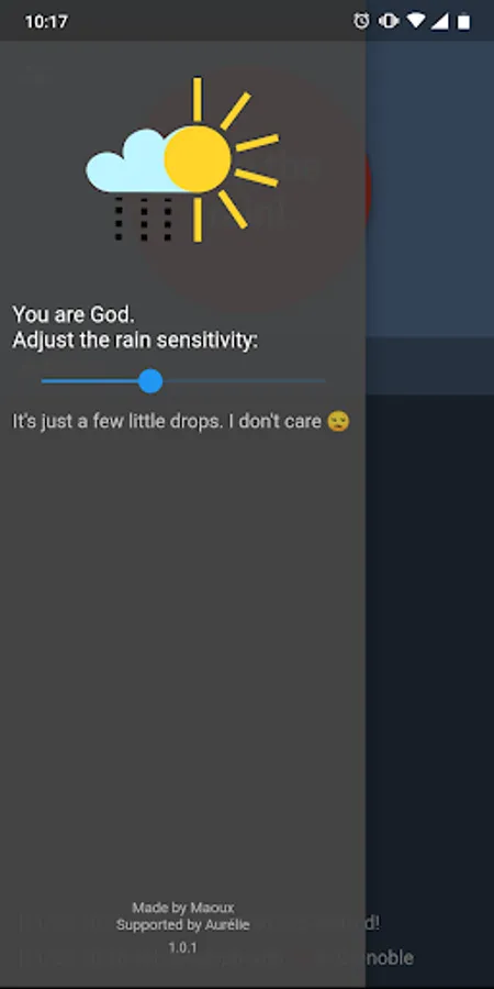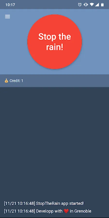 This app gives you the power, it couldn't be easier, just a button to press! Our team takes care of everything and rain will stop as soon as possible.