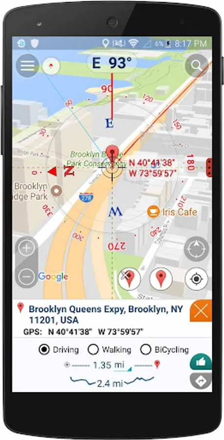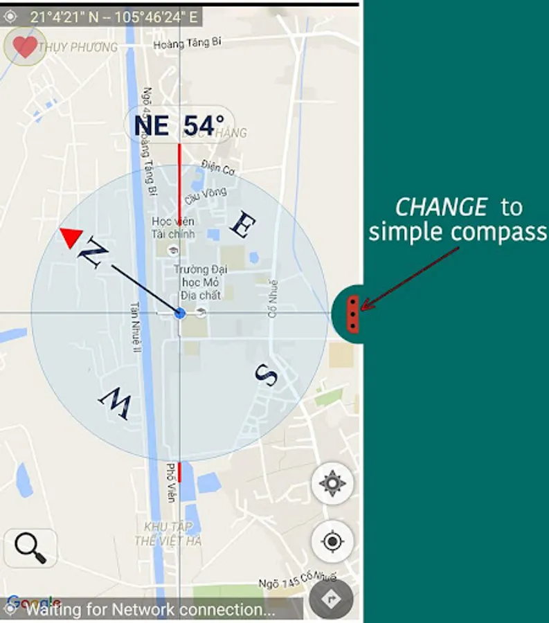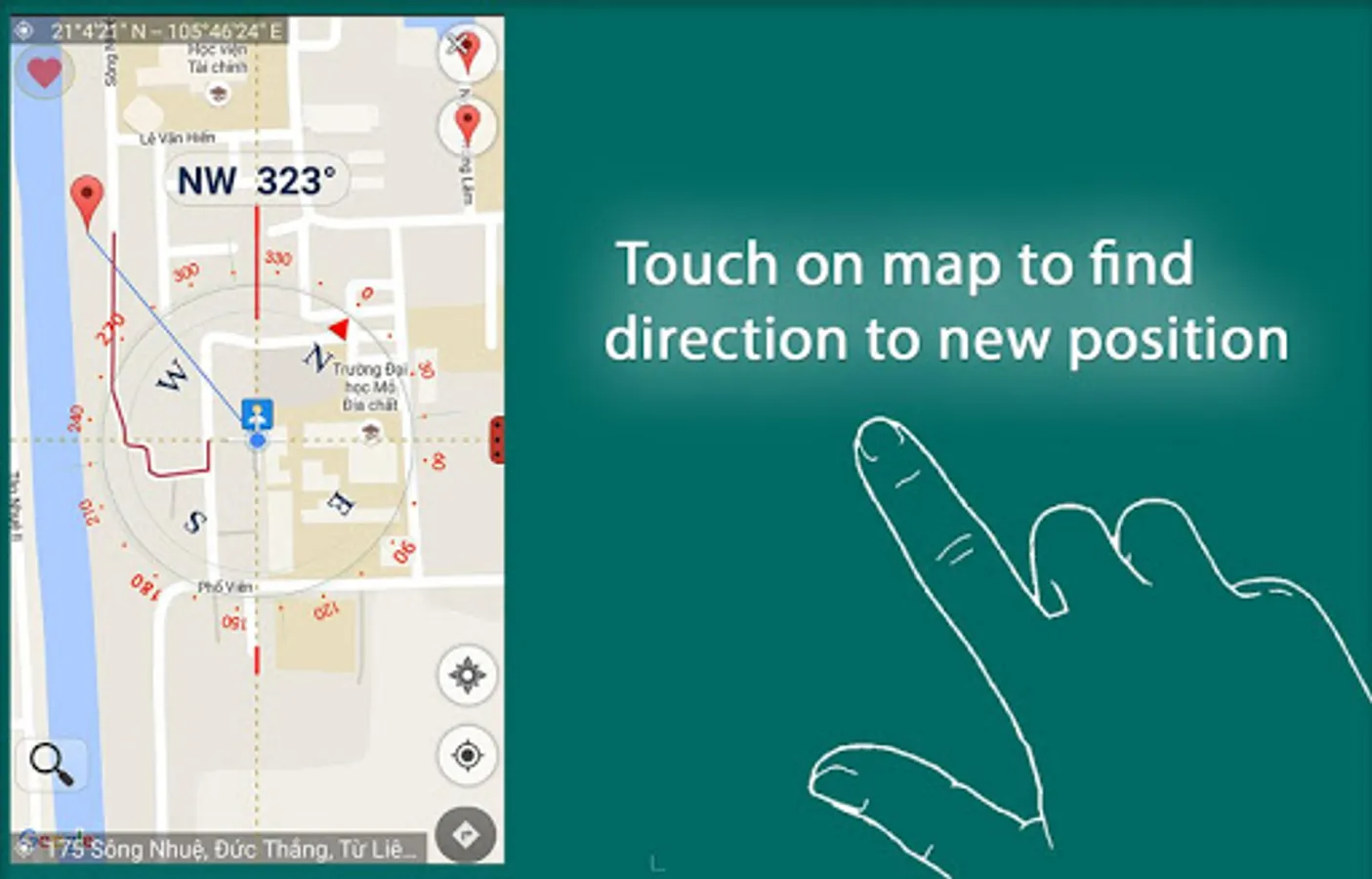 "Compass Coordinate" can use the Internet and GPS to find your location and address you standing. You can connect directly via Google Map by push on button "direction" on the top right screen when you activate this feature.