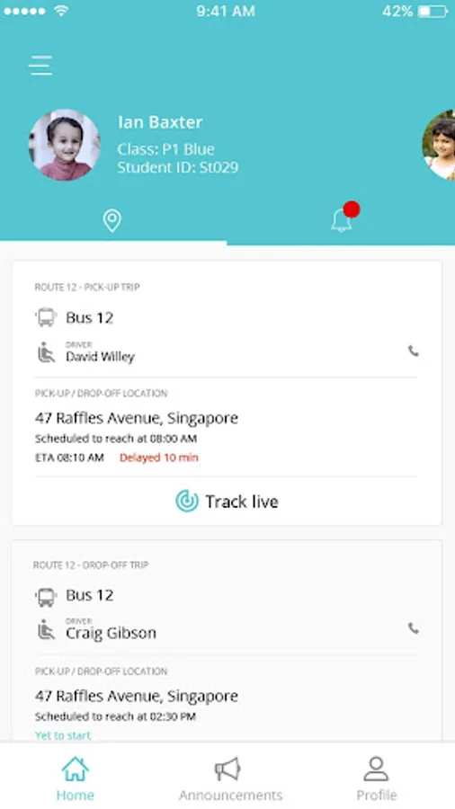 - Multiple trips can be assigned for students (Pick Up/Drop Off)