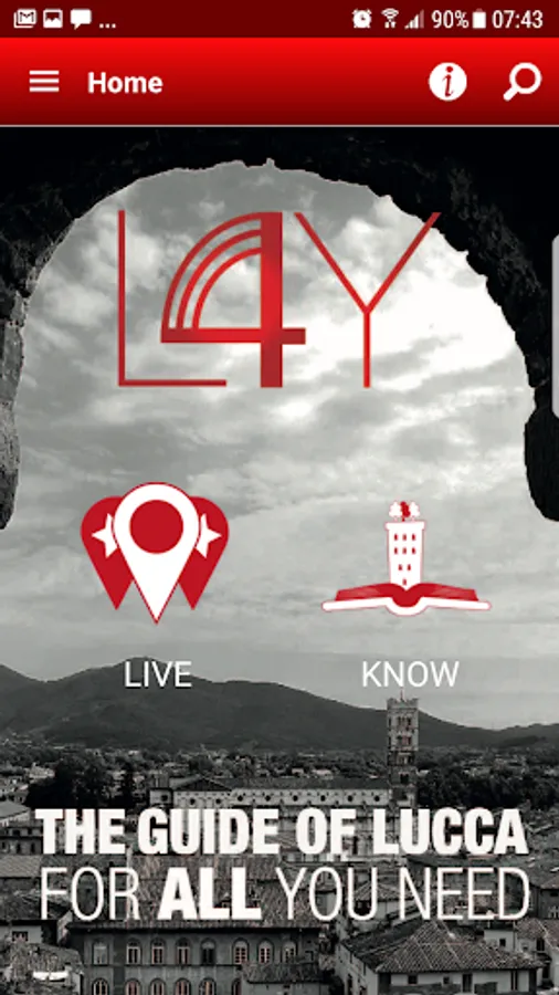 Lucca 4 You is the Multimedia Guide Di Lucca City and Province, the application that will make a tour in Lucca offering exciting features to enjoy it to the fullest! The application presents user-friendly and pleasant graphics. Once we launched we will be welcomed by the beautiful Lucca 4 You logo that evokes the Labyrinth depicted in the Duomo Di Lucca.