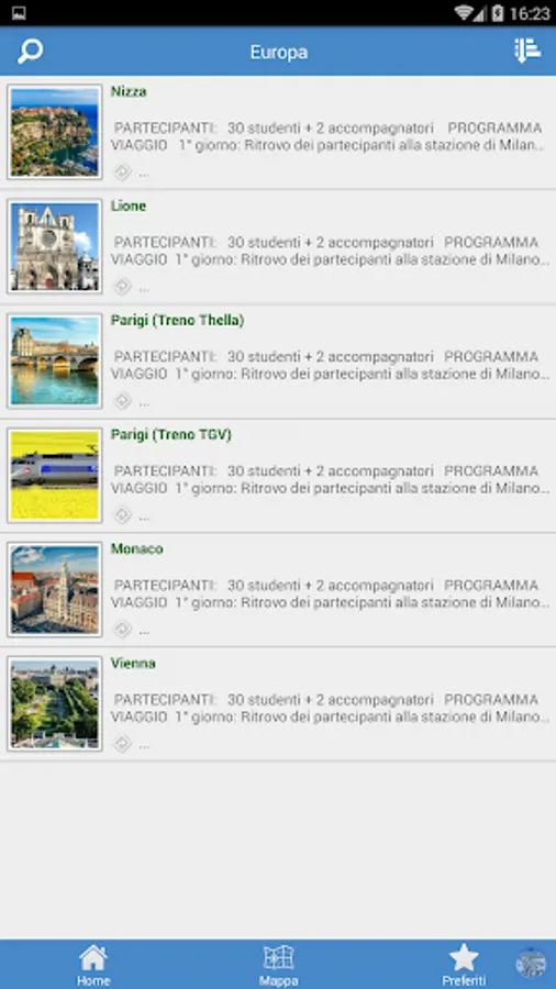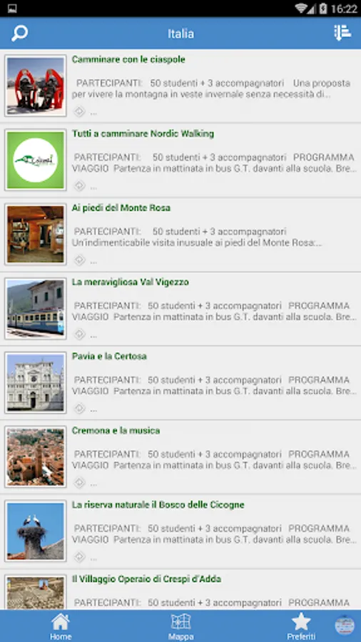 The Tagliabue Travel app includes more than 200 proposals for school trips of one or more days by bus, train and plane. Each itinerary includes a description of planned activities, times of departure and return, the price per student and any other optional extras.