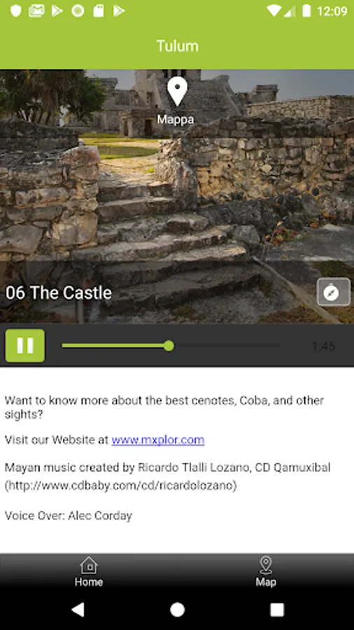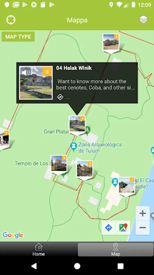 • Photos and description (audio) of all major Mayan structures on site