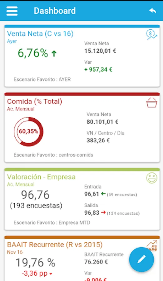 GIRAPP puts in the palm of your hand all business areas KPIs (sales, cashrec, financials, labour,operations, maintenance, etc.) from GIR Net´s Business Intelligence platform.