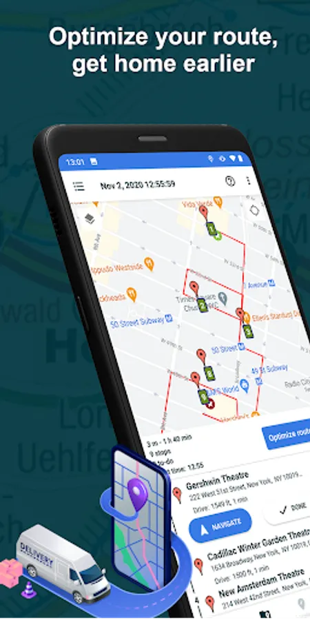 Maposcope fast route planner optimizes your delivery routes so that you end up working up to 30% faster, saving you hour a day!