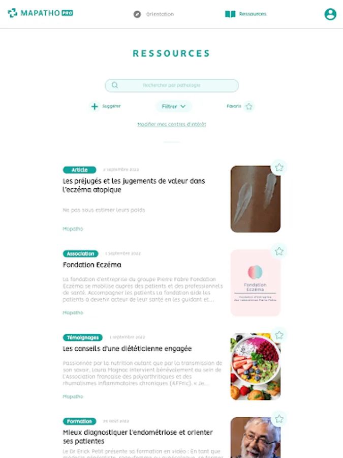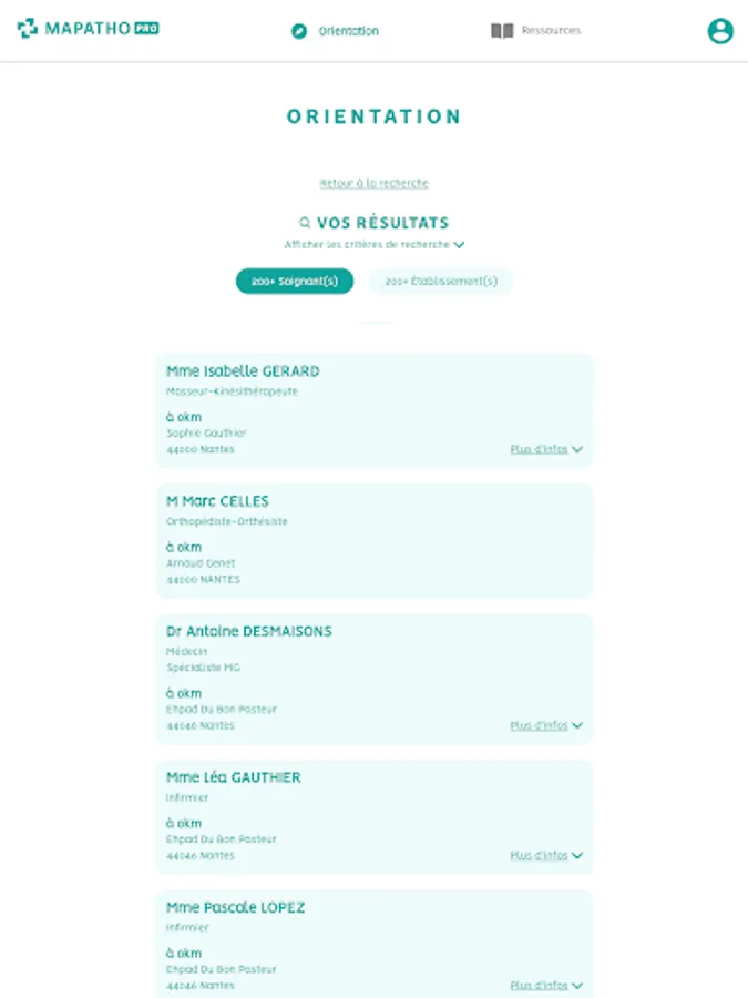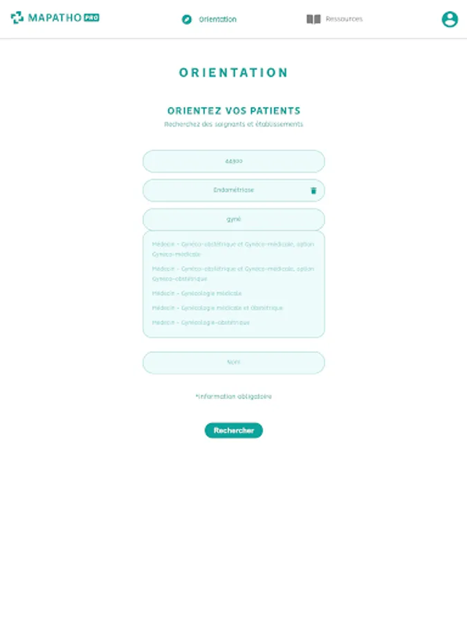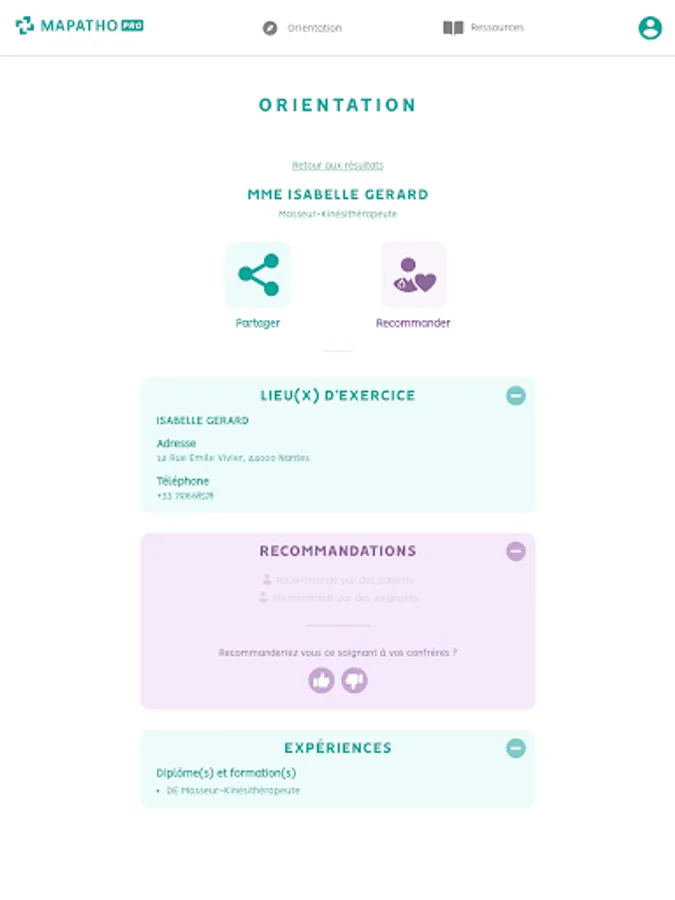 - To easily find a caregiver to refer your patient suffering from chronic pathologies. Thanks to the directory based on Mapatho's patient recommendations and patient associations, you can find and send your patients the names and contact details of professional experts in chronic pathologies.