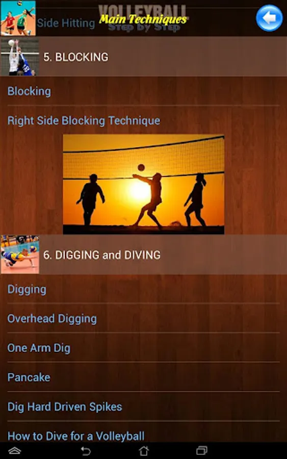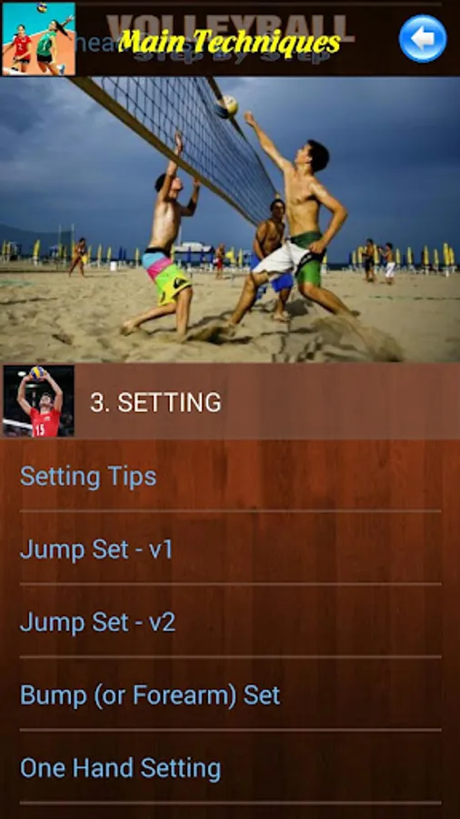 This app demonstrates Volleyball techniques: