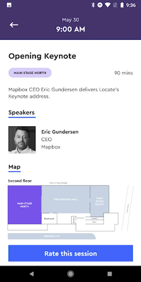 "Locate App" is a conference app for attendees at Locate, May 30-31 at Pier 27, San Francisco. Use this app to browse the schedule and receive updates on talks and times throughout Locate. Sign up to attend: www.mapbox.com/locate.