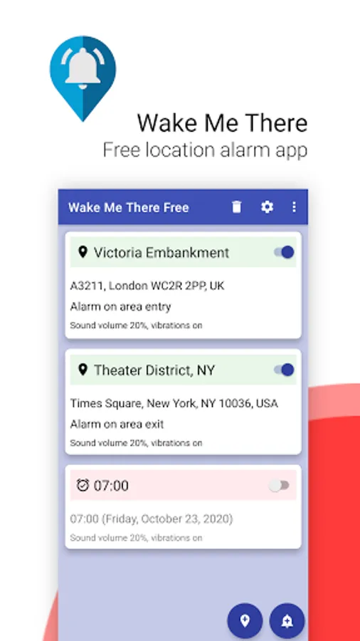 With free Wake Me There - GPS alarm app you will never go past your destination or miss your date. This simple free GPS location alarm app for Android will also help you to keep within the mandated distance from home or any other position on the map. Easily set a perimeter.