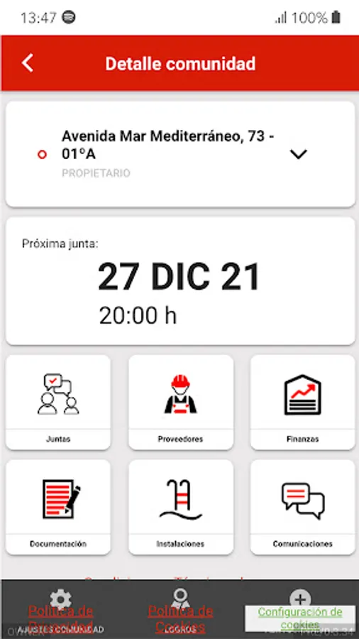 CONNECTED COMMUNITIES is the best digital and online solution that offers in a simple and orderly way a value proposition in the daily life of the Communities of Owners, focused on Communication, Access to Information and Ordinary Management, both for the Administrator , the President and the neighbors of the Community.