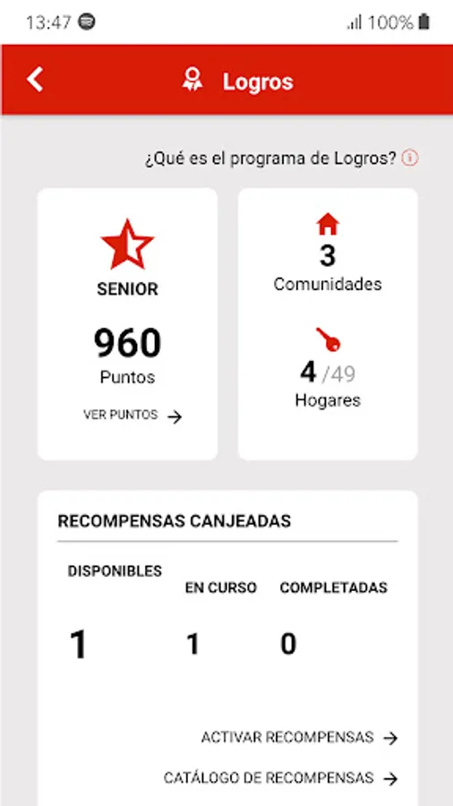 In addition, and only for the Property Administrator profile, the Achievements program is available, which promotes the registration of Communities and Homes, and earns points so that Connected Communities insured in MAPFRE can enjoy High Value Services.